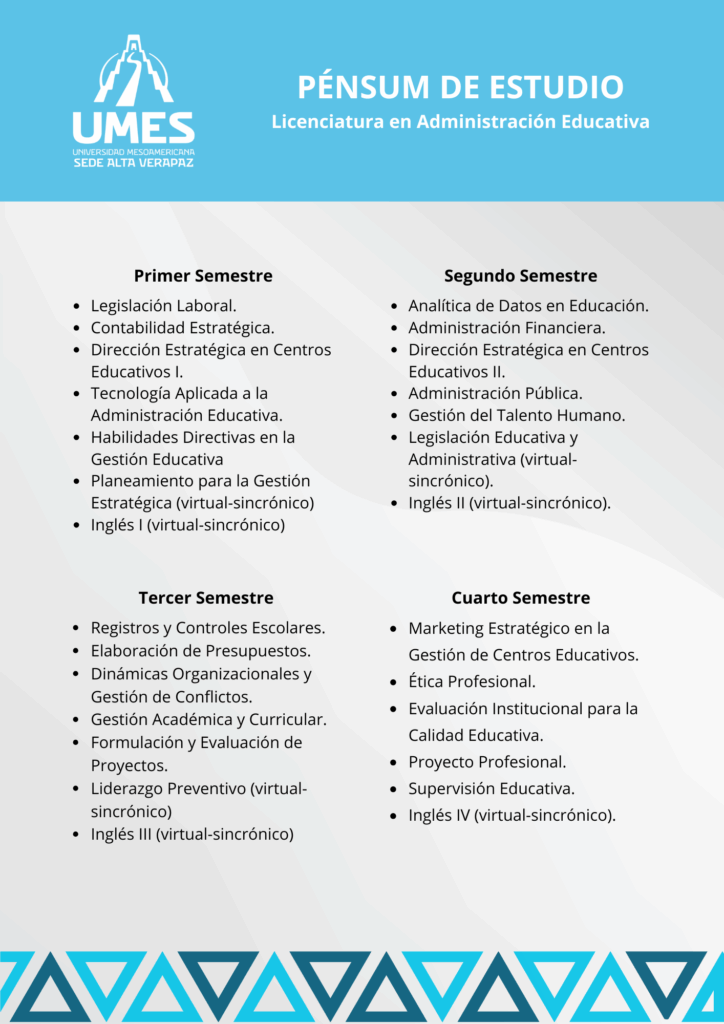 Dirigida a egresados de Profesorado en Enseñanza Media o Primaria, esta licenciatura, con duración de dos años en plan fin de semana, busca formar líderes capaces de gestionar, transformar y potenciar instituciones educativas desde un enfoque integral y contextualizado a las realidades del país y la región.
