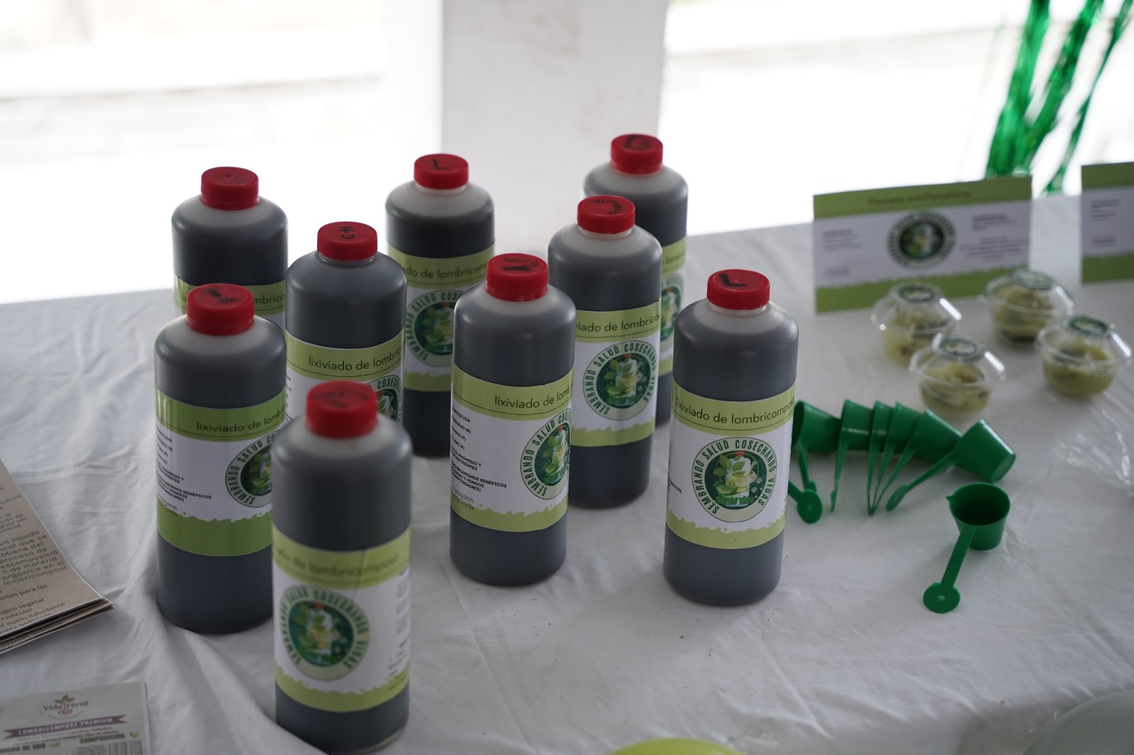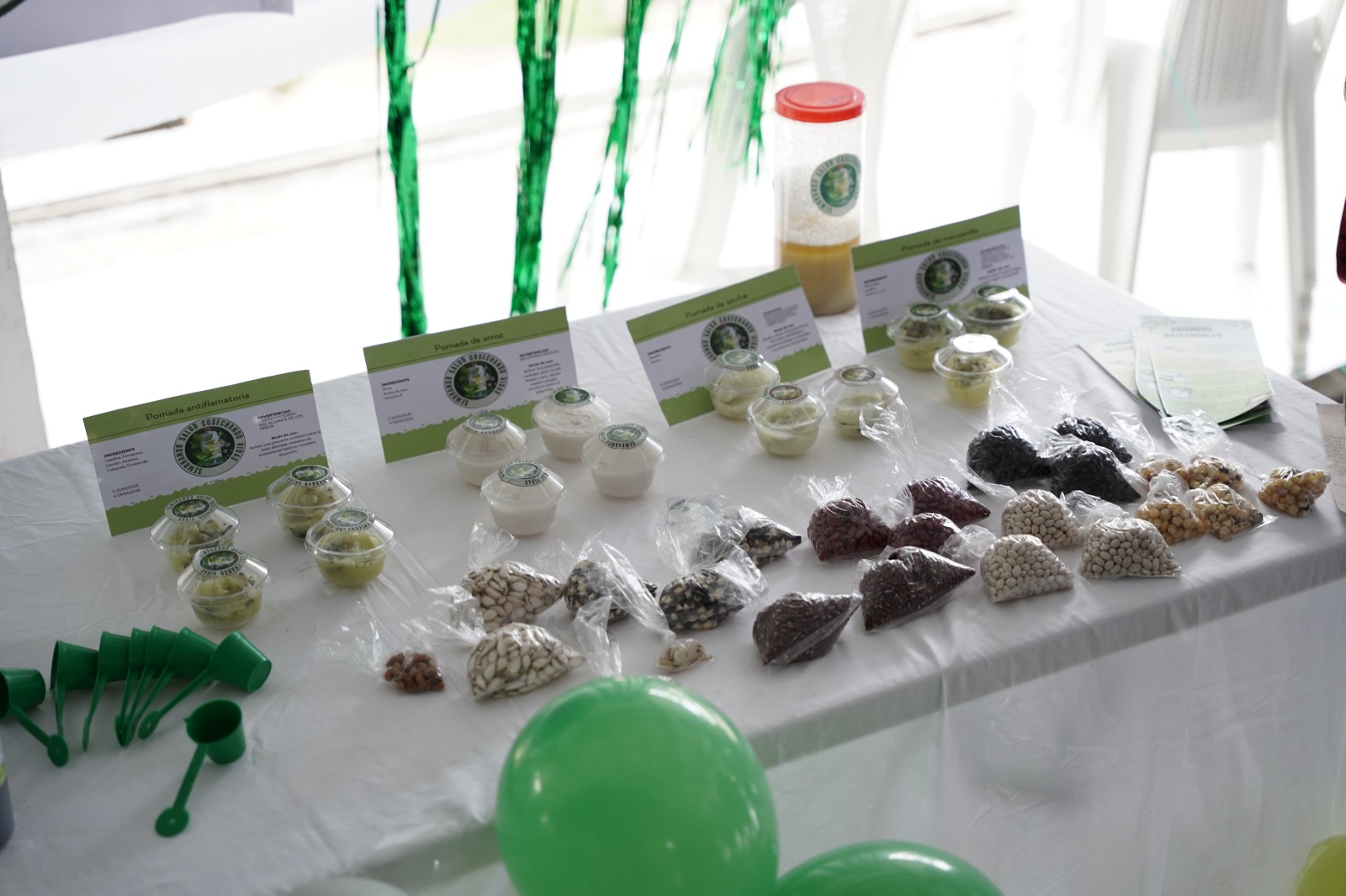 Durante la jornada, los alumnos presentaron distintos productos elaborados de manera artesanal y sostenible, entre ellos: concentrados, jarabes expectorantes, tinturas desparasitantes, lombricompost, humus de lombriz, caldo bordelés, sulfocálcico, pomadas y biomix, entre otros.